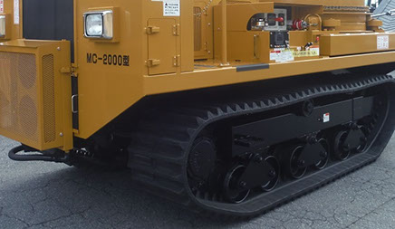 Equipped with durable rubber crawlers and our HST system, both used on our Morooka dump carriers. MC series enable low noise and vibration. Makes it possible for operation on various jobsites.