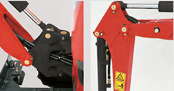 By locating above the boom, the boom cylinder remains safe during breaker or dumping operation