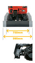 The U10-3 features a hydraulic track gauge that can be adjusted from 750mm to 990mm. With the touch of a single lever, you can reduce the track gauge to navigate narrow